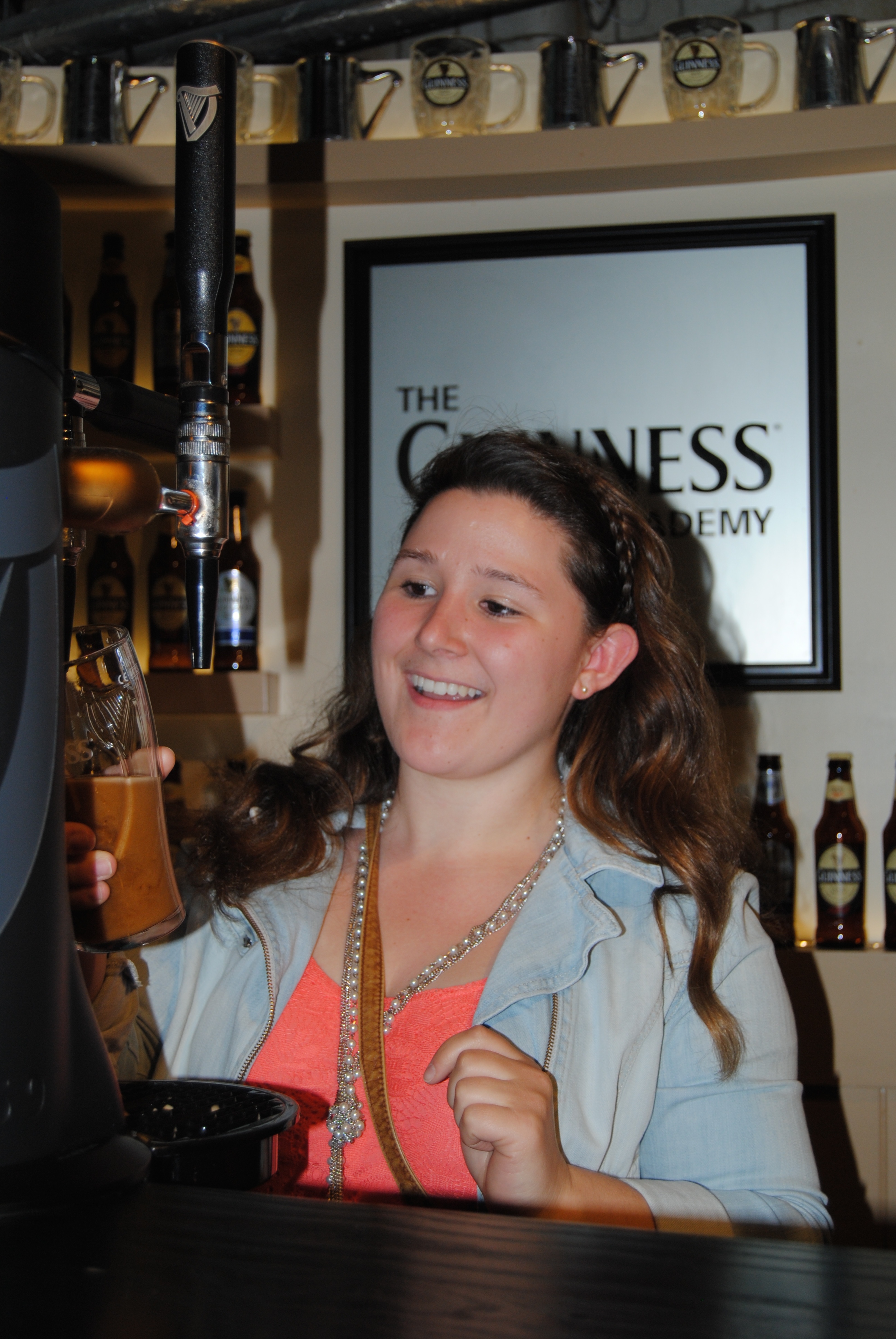 After the tour everyone went for a quick lunch and then we all headed out to the Guinness Factory as it was the one place everyone wanted to visit while we were in Dublin. The factory was almost like an interactive museum and while we walked pretty quickly through the first two floors, once we arrived at the taste testing we were excited. We learned how to taste and drink Guinness and what goes into the beer that makes it taste the way it does. The beer is an amber color, not black or brown, and when we learned how to drink it, we learned it has sweet hints of coffee, citrus and almond due to the malt, hops and barley. Next, we learned to pour the perfect pint and that was the best part. You hold the glass at a 45 degree angle and once the beer gets about 4/5 of the way to the top you tilt the glass upwards and then let it sit for a minute or so, then you fill it up the rest of the way. Some random lady tried to steal my perfectly poured pint, but no worries, I gave her a stern talking to and took back my glass, cheers!
