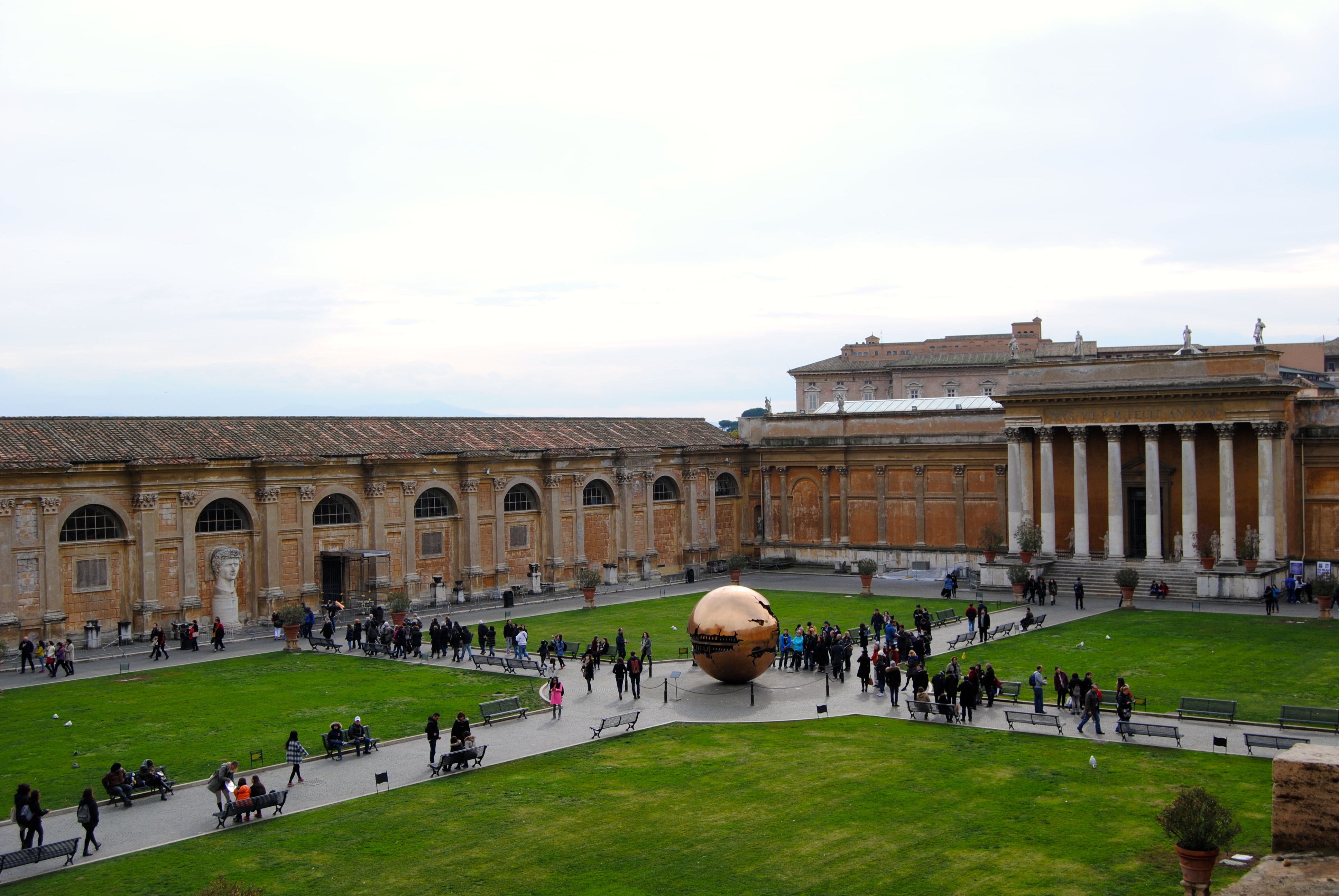 – The courtyard of the Vatican Museum features a giant bronze globe. The art is obviously more modern than the rest of the art on display at the museum. This is because, when it was placed there in 2003, the Pope wanted to make sure that the Vatican was a museum for ages, not just reflective of the old school art.