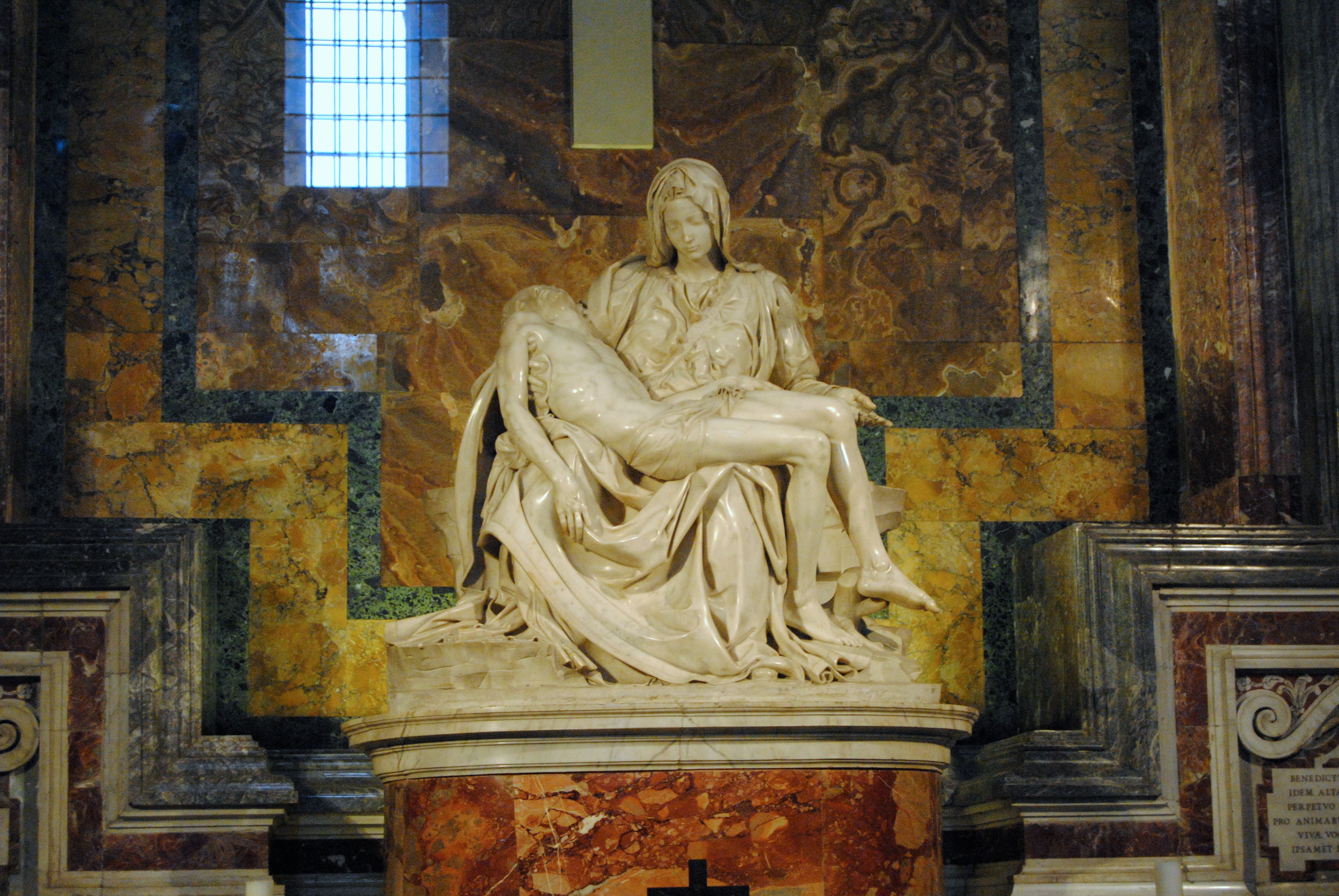 – Before the 70’s you could touch the Pieta, but one day a man ran into the church claiming to be Jesus and beat the statue. After extensive reconstruction, the Pieta was put back on display, but this time behind glass.