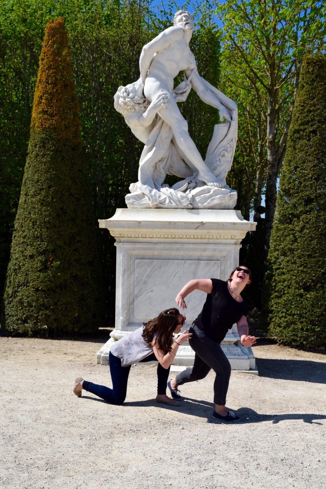 As we continued upwards, we came across a row of statues. Since being in Europe, Mel and I have grown a fondness for mimicking statues. It started out as a joke, but now whenever we find ourselves in a museum or a garden we can’t seem to avoid making complete fools of ourselves as we try to recreate the statues. Luckily, Jess was totally on board with our shenanigans, and even acted as our creative director. Enjoy some of the photographic evidence of our embarrassing, yet equally as amusing photoshoot on the grounds of Versailles.