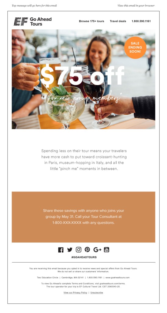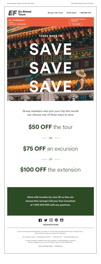 Project: Create monthly emails that encourage Group Coordinators to recruit new travelers for their upcoming tour or set up their next trip.